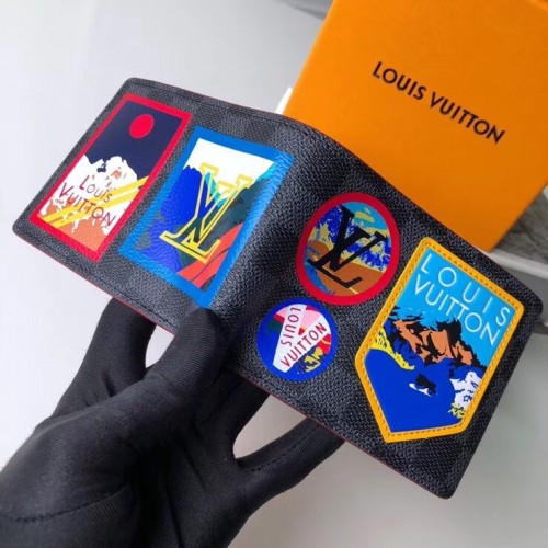 Louis Vuitton Travel Stickers Patches Alps Damier Graphite Canvas Multiple Wallet N60097 2018