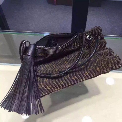 size:22.5*30 cmInspired by Louis Vuitton's Spring/Summer 2016 fashion show, the Triangle Warrior Pouch in Monogram-print fabric is a lightweight, urban design whose long leather strap enables it to be carried in many different ways. The oversize pompom adds a playful, feminine touch.- Zipper closure- Multiple-carry leather strap- Pleated fabric- Monogram canvas and calf leather trim- Microfiber lining- Silver color metallic pieces