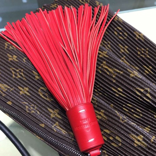 size:22.5*30 cmInspired by Louis Vuitton's Spring/Summer 2016 fashion show, the Triangle Warrior Pouch in Monogram-print fabric is a lightweight, urban design whose long leather strap enables it to be carried in many different ways. The oversize pompom adds a playful, feminine touch.- Zipper closure- Multiple-carry leather strap- Pleated fabric- Monogram canvas and calf leather trim- Microfiber lining- Silver color metallic pieces