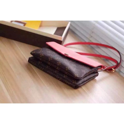 9.1 x 6.7 x 1.6 inches (Length x Height x Width) - Coated Monogram canvas and grained calf leather- Grained calf-leather adjustable shoulder strap- Calf-leather trim- Golden-brass hardware- Microfiber lining- Front compartment with flap closing system and snap button- Zipped back compartment- Central “secret” pocket with invisible magnet