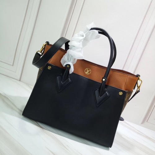 Louis Vuitton Twist Calfskin and Monogram Canvas On My Side Tote Bag M53823 Black 2019
