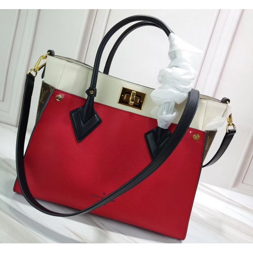 Louis Vuitton Twist Calfskin and Monogram Canvas On My Side Tote Bag M53824 Rouge Pirate 2019