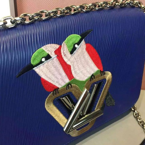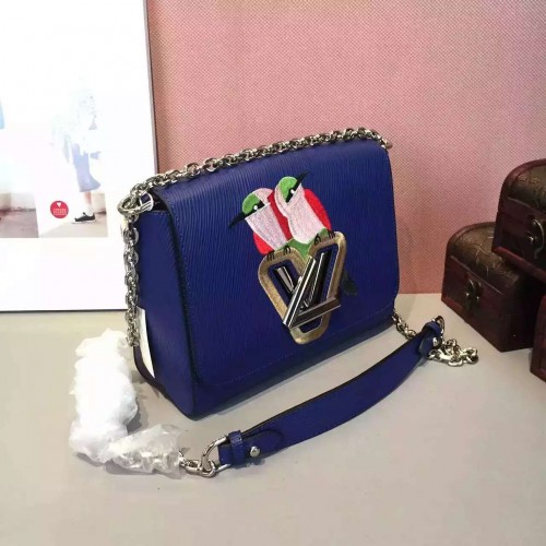 size:23*18*8 cmAdmiring looks are what this Early Bird catches. The exotic & colourful embroidered Epi leather evokes the jungle theme of Summer 2016 while linking back to the House spirit of travel. Romantic and on-trend, this fresh Twist Epi model moves easily from day to evening.- Embroidered Epi leather and calfskin patches- Epi leather trim- Microfiber lining- Silver colour metallic pieces- 95cm sliding shoulder chain with leather pad- Transformable LV twist lock- Large inside compartment- Inside flat pocket with mirror for touch ups- Wave base offers ample capacity