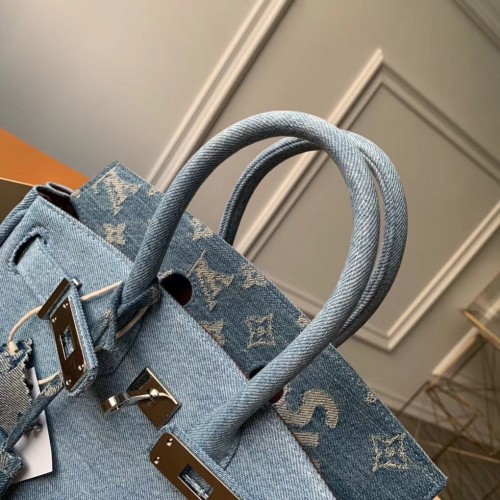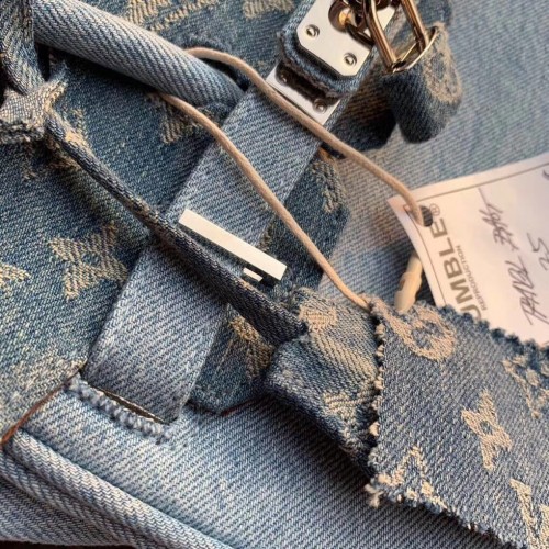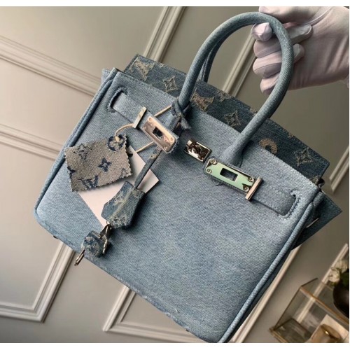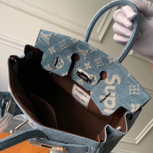 Louis Vuitton x Supreme Humble Travel Bag Birkin 25cm Printed Jeans Denim Blue 2019