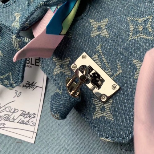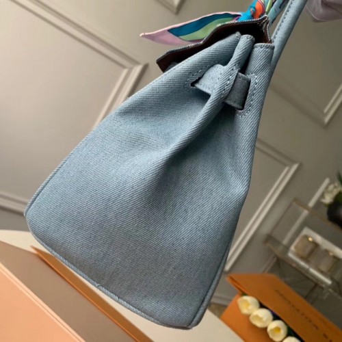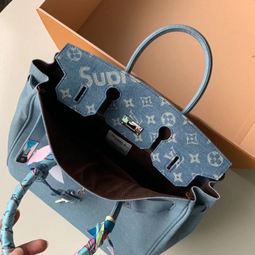 Louis Vuitton x Supreme Humble Travel Bag Birkin 30cm Printed Jeans Denim Blue 2019