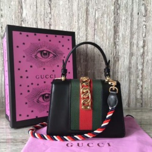 Fusing classic Gucci signatures with unique new-season touches, the Sylvie shoulder bag in miniature size is the latest must-have style from Alessandro Michelle. Crafted from smooth calfskin eather, this mini version is perfectly size for your cell phone, keys and cardholder. It comes with a twisted rope and detachable shoulder strap so you can carry it cross-body too.