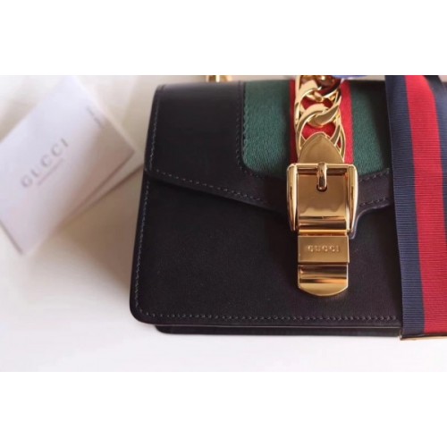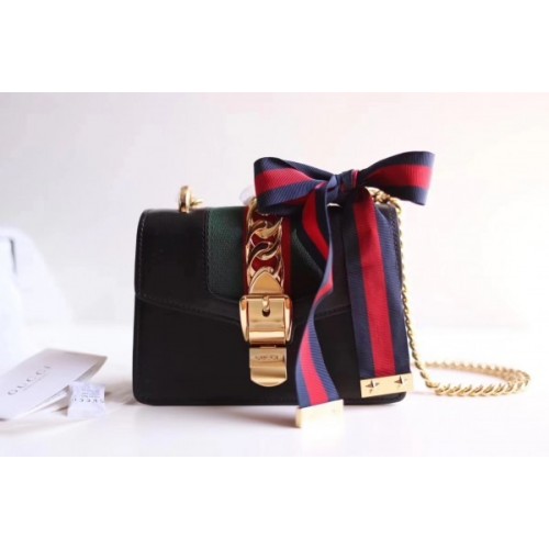 Gucci Black Leather Sylvie Mini Chain Bag