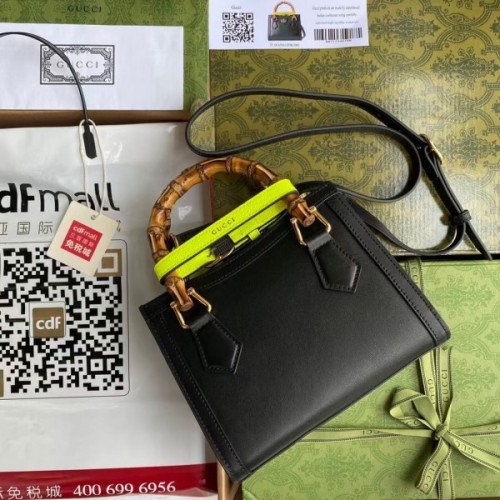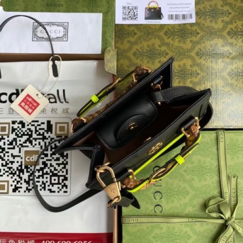 Calfskin leather held by bamboo top handles makes for a refined accessory that could only be crafted by Gucci. Named 'Diana', this accessory is finished with gold-tone hardware and receieves the GG logo plaque positioned towards the front. A playful reference to the bands used to keep handles in shape.