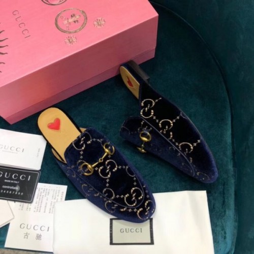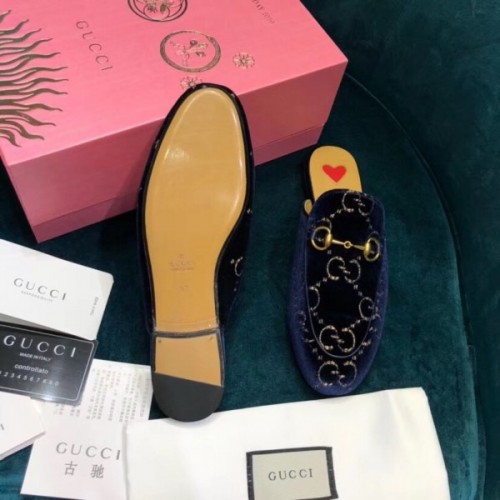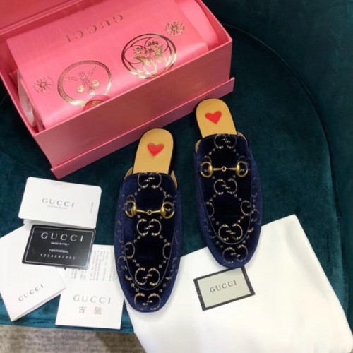 Gucci Princetown Slippers In Blue GG Velvet