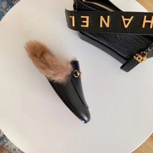 Gucci's shearling-lined slippers were an instant hit when Alessandro Michele created them in 2015 – they've since been worn by a slew of stylish women, including Gigi Hadid, Dakota Johnson and Florence Welch. This pair has been made from sleek black leather and has the brand's signature horsebit hardware on top.