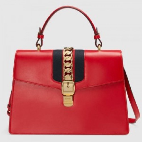 Gucci Red Sylvie Medium Top Handle Bag