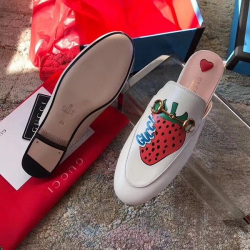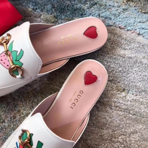 Gucci White Princetown Slippers With Gucci Strawberry