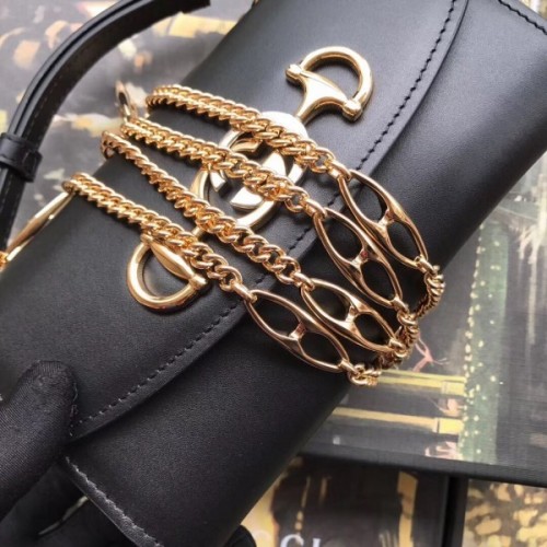 Introduced in the evocative setting of the Théâtre Le Palace in Paris, the Gucci Zumi line takes its name from actress and experimental musician Zumi Rosow, who walked the Spring Summer 2019 runway carrying the bag. Gucci continues to bring House icons to the forefront in unexpected ways, merging two of its most distinctive codes into one symbol: the Interlocking G Horsebit. The hardware is presented in a modern mix of silver and gold tones on a smooth leather mini shoulder bag. The bag can be carried cross body, used as a clutch when the chain is removed and worn as a top handle when the leather handle is extended.