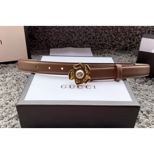 Women’s Gucci 370717 GG Marmont 25mm Leather belt with Flower Buckle in Caramel Leather